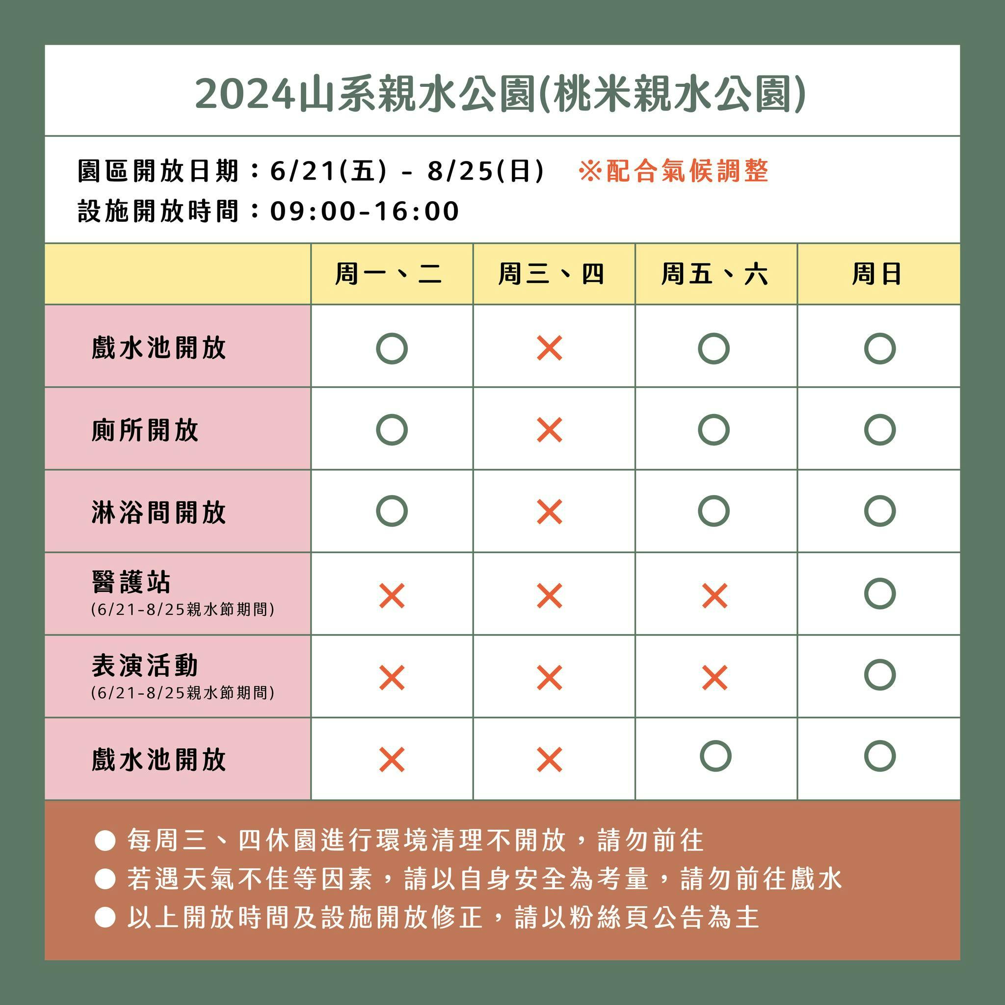 暑假期間:7/1-8/31週三無公休,全園正常開放